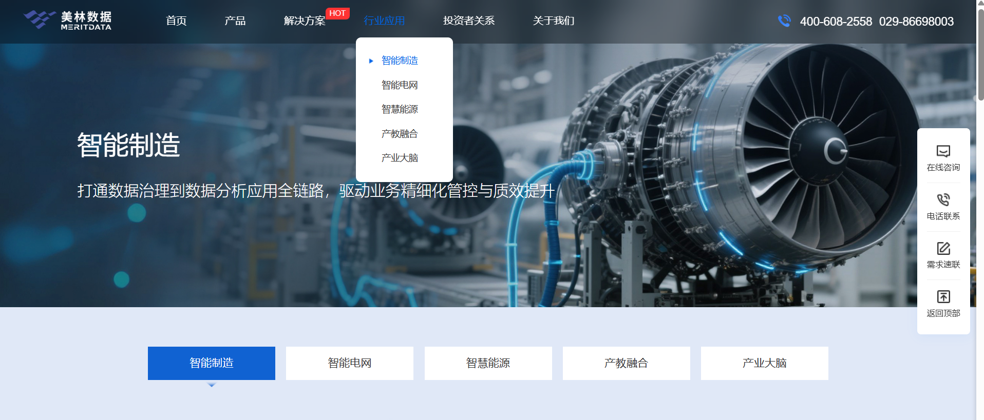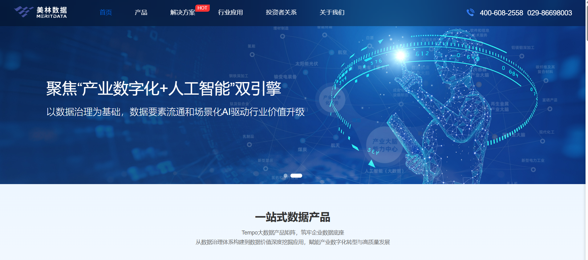 數(shù)據(jù)產(chǎn)品矩陣、企業(yè)級“智能+”解決方案、產(chǎn)業(yè)+人工智能服務(wù)三大價值主張,新增行業(yè)客戶案例展示、權(quán)威認證資質(zhì)及新聞資訊快速入口,用戶可一鍵觸達核心內(nèi)容。