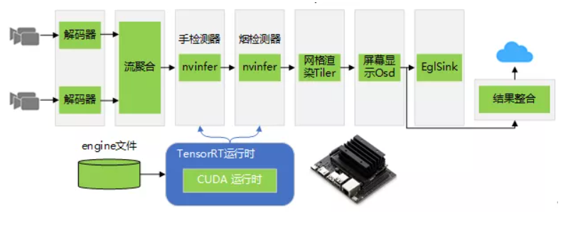 基于Jetson Nano的抽煙檢測(cè)模型部署 抽煙檢測(cè)對(duì)接實(shí)時(shí)視頻流,在部署時(shí)采用DeepStream框架進(jìn)行部署: